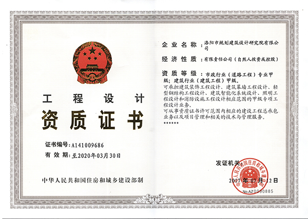公司市政工程設(shè)計(jì)專業(yè)1993年經(jīng)中華人民共和國建設(shè)部批準(zhǔn)獲得市政工程設(shè)計(jì)乙級(jí)資質(zhì),幾十年來,公司市政工程設(shè)計(jì)專業(yè)為洛陽市和周邊地區(qū)的經(jīng)濟(jì)建設(shè)作出了較大的貢獻(xiàn)。近年來,公司領(lǐng)導(dǎo)審時(shí)度勢推出了大市政的發(fā)展戰(zhàn)略,努力打造一流市政設(shè)計(jì)隊(duì)伍、創(chuàng)造一流品牌、實(shí)施一流的服務(wù)。在注重市政工程設(shè)計(jì)產(chǎn)品的質(zhì)量和市政設(shè)計(jì)業(yè)務(wù)發(fā)展的同時(shí),還注重專業(yè)人才梯隊(duì)建設(shè),吸收了包括研究生在內(nèi)的大批專業(yè)技術(shù)人才。并嚴(yán)格按照ISO9001《質(zhì)量管理體系》要求狠抓市政工程設(shè)計(jì)產(chǎn)品質(zhì)量,市政工程設(shè)計(jì)成果連續(xù)多年獲省級(jí)獎(jiǎng)項(xiàng),為河南省特別是洛陽的城市建設(shè)和經(jīng)濟(jì)發(fā)展作出了突出的貢獻(xiàn)。