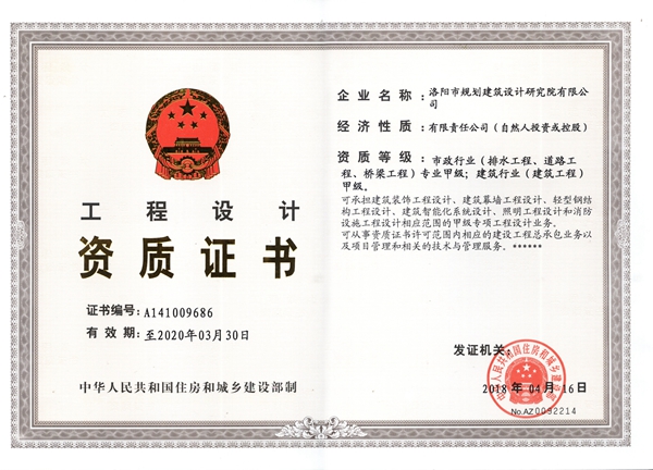 資質(zhì)增項升級是公司實施大市政發(fā)展戰(zhàn)略的必要前提資格條件,也是公司開拓發(fā)展增長極的基礎(chǔ),還是市場準(zhǔn)入的入場券,有了入場券才有進入更高平臺、獲得展示實力、贏得市場、取得更好經(jīng)濟效益的機會。2017年公司縝密策劃、精心準(zhǔn)備,認真研究國家資質(zhì)標(biāo)準(zhǔn)及政策,優(yōu)化公司資源配置,結(jié)合公司生產(chǎn)能力、以往的業(yè)績、企業(yè)信譽、人員狀況、管理水平等實際情況全面研究、衡量,制定了資質(zhì)升級工作方案,經(jīng)過積極的準(zhǔn)備和不懈努力,公司橋梁工程、排水工程設(shè)計資質(zhì)終于成功晉升為國家甲級資質(zhì)。