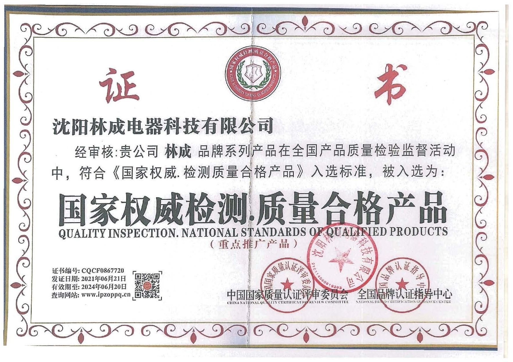質(zhì)量合格產(chǎn)品證書