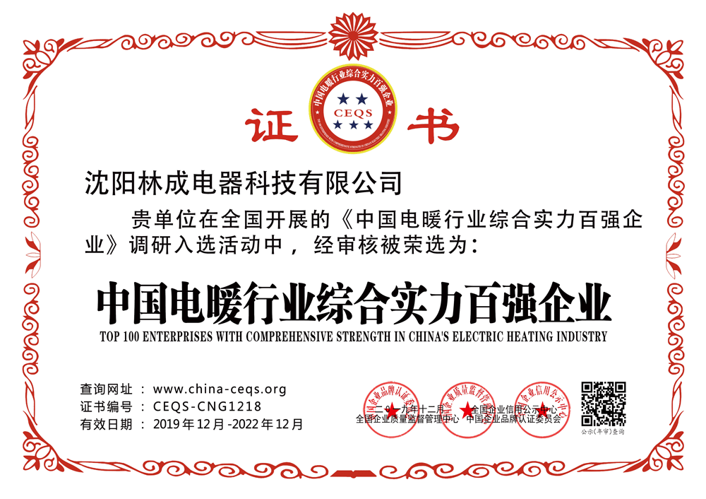 電采暖百強企業(yè)證書